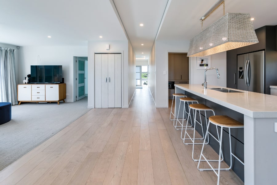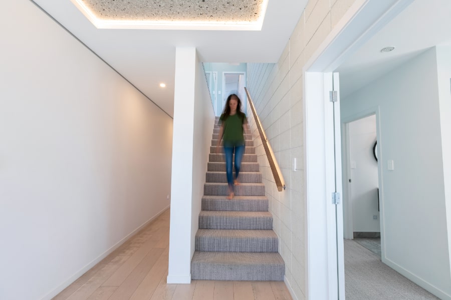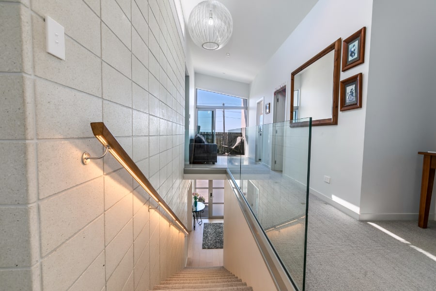 The external structure uses Firth Hot Blocks with Resene Plaster System, and the client’s relationship with the masonry industry is evident through-out with block and concrete detailing.